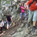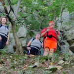 Ostatní pokračovali po neznačenom “chodníku” okolo Váhu. Je to náročná trasa vedúca miestami okolo rieky, ale väčšinou po skalách ponad rieku, okolo Margity a Besnej. Cestu znepríjemňovali popadané veľké stromy, skalné sute a miestami žihľavové polia, čo ocenili machri v krátkych nohaviciach…